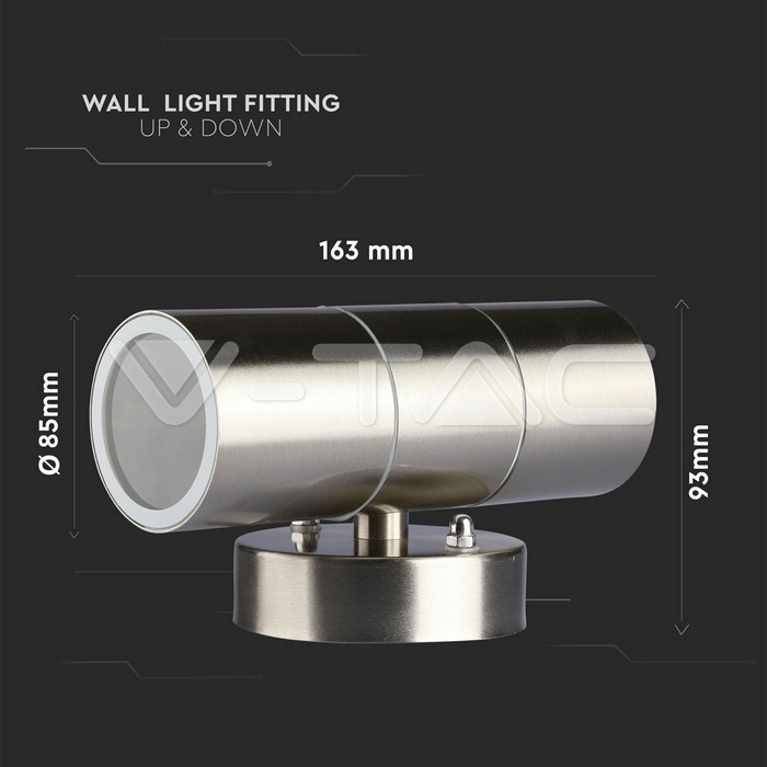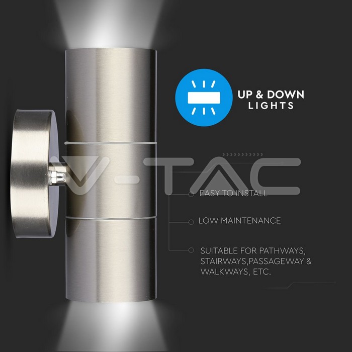 Aplica de perete V-TAC VT-7622, corp din oțel inoxidabil, 2 direcții, IP44