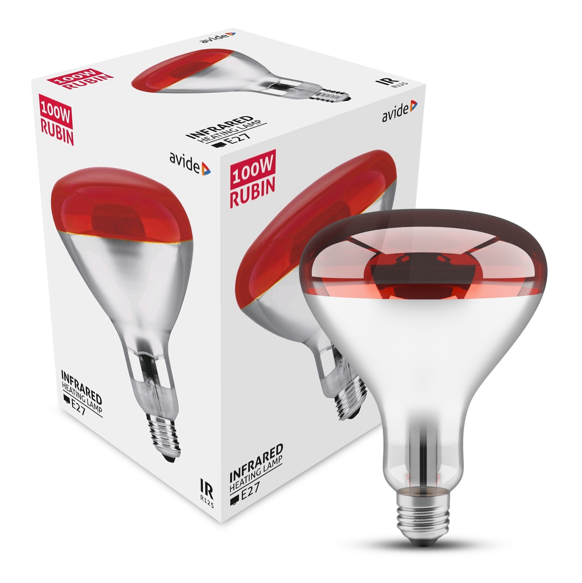 Bec infraroșu Avide Rubin E27 100W, ideal pentru ameliorarea durerilor musculare și îmbunătățirea circulației sângelui.