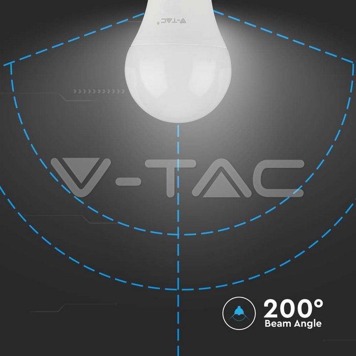 Bec LED V-TAC A60 E27 10.5W 6500K, eficient energetic, lumină albă rece, durată de viață 20.000 ore.