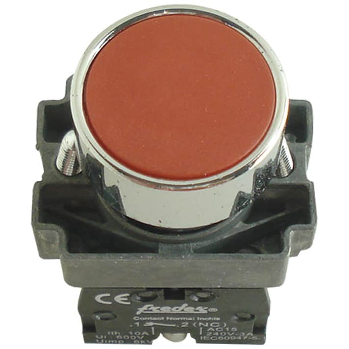 Buton cu revenire roșu, 1 contact normal închis, diametru montaj 22 mm.