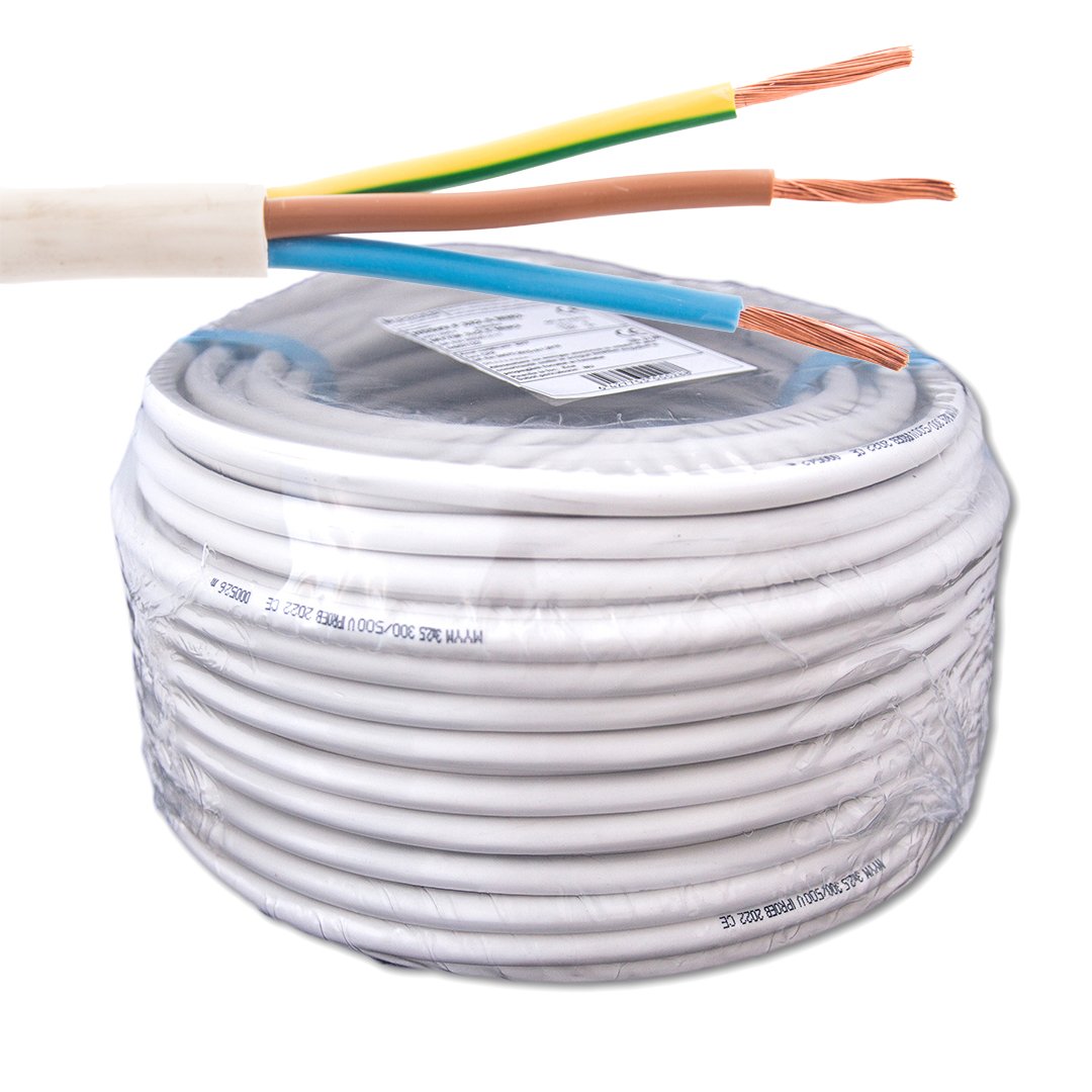 Cablu electric MYYM 3 x 1,5 mm² este un cablu de alimentare flexibil, alcătuit din trei conductori din cupru multifilar, fiecare izolat cu PVC colorat, grupați într-o manta exterioară din PVC gri rezistent la uzură. Este destinat instalațiilor electrice de joasă tensiune, fiind ideal pentru alimentarea prizelor, corpurilor de iluminat, aparatelor electrocasnice și echipamentelor de comandă.