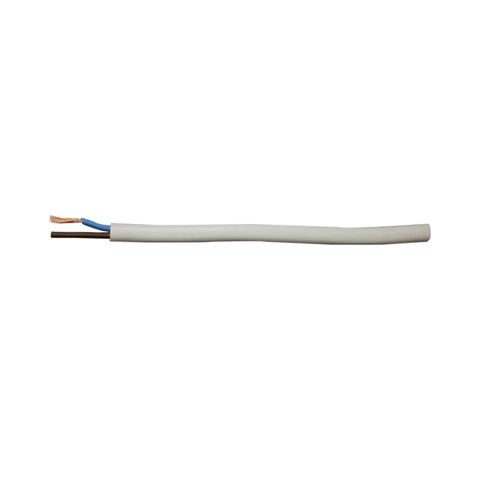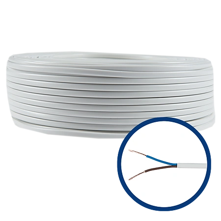 Cablu electric plat MYYUP 2x0,75 mm² din cupru multifilar, izolat și mantat cu PVC alb. Ideal pentru aparate electrocasnice, iluminat și conexiuni interioare flexibile.
