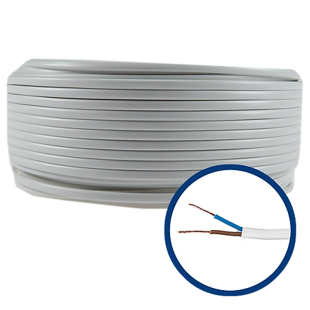 Cablu electric plat MYYUP 2x1 mm² din cupru multifilar, izolat și mantat cu PVC alb. Ideal pentru instalații interioare, aparate electrocasnice și conexiuni mobile ușoare.