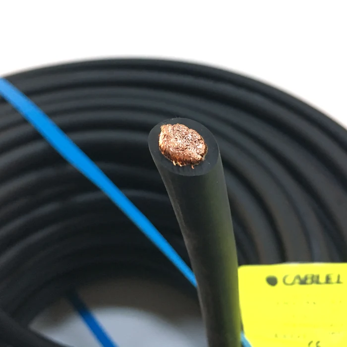 Cablu electric de sudură flexibil MSUDC 35 mm² cu conductor din cupru multifilar și izolație din cauciuc rezistent. Ideal pentru conectarea surselor de sudură la electrozi, rezistent la curenți mari și solicitări mecanice.