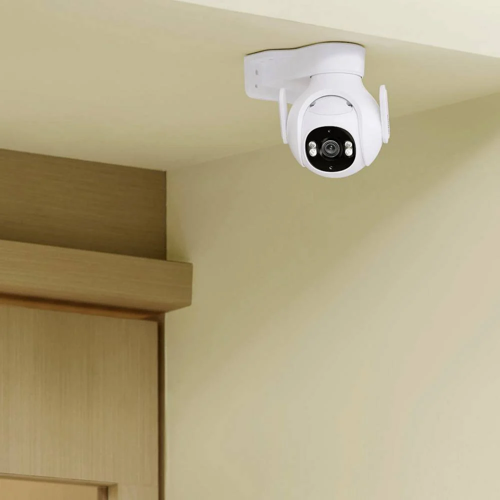 Camera integrează funcții avansate de securitate precum detectarea mișcării, detectarea persoanelor și alarmă luminoasă și sonoră, trimițând notificări în timp real către utilizator prin aplicația mobilă. Microfonul și difuzorul integrate permit comunicarea audio bidirecțională, utilă pentru interacțiunea cu vizitatorii sau avertizarea intrușilor.