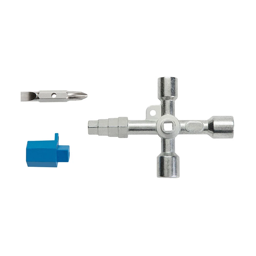 Cheia universală HOGERT HT1W761 este un instrument esențial pentru profesioniști, oferind acces facil la dulapuri de comutare și sisteme de închidere pentru gaz, apă și electricitate. De asemenea, este potrivită pentru instalații precum climatizare, ventilație și tablouri de distribuție. Fabricată din zinc turnat sub presiune, această cheie dispune de 9 capete diferite, inclusiv două găuri pătrate de 5 mm și 8 mm, o gaură triunghiulară de 10 mm și o gaură de cazma de 9 mm. În plus, este echipată cu un bit de șurubelniță suplimentar cu două fețe de 6 mm/ph2 și un adaptor pentru șurubelniță de 1/4".