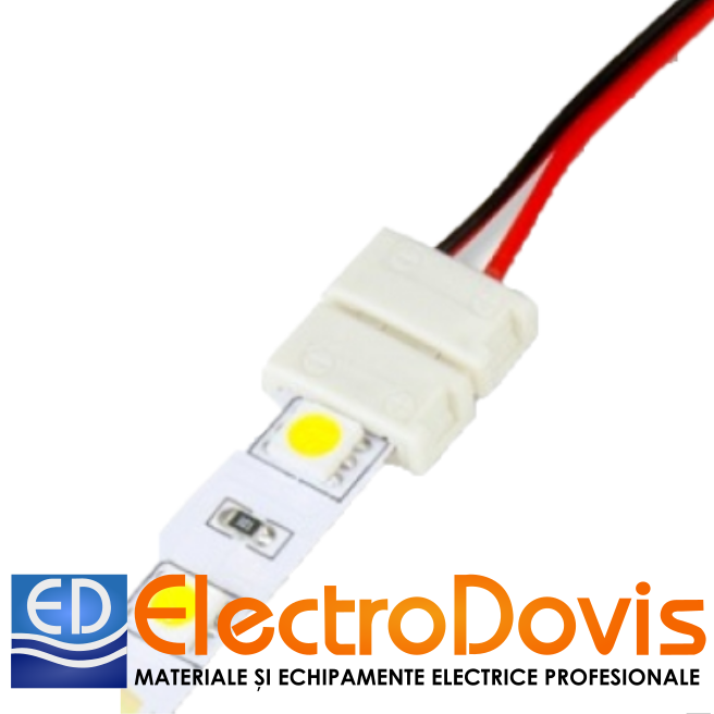 Conector rapid pentru bandă LED monocoloră de 8mm, fără lipire, pentru conexiuni sigure și durabile.