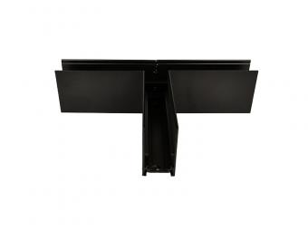 Conectorul 'T' pentru șină magnetică aplicată permite conectarea a trei segmente de șină, fiind ideal pentru configurarea sistemelor de iluminat personalizate. Fabricat din policarbonat și cupru, acest conector asigură o conexiune sigură și durabilă. Culoarea neagră mată se integrează armonios în diverse decoruri interioare.
