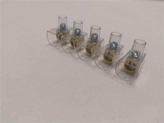 Conector terminal FREDER 16mm², 5 poli, rezistență la 130°C, fabricat din poliamidă transparentă.