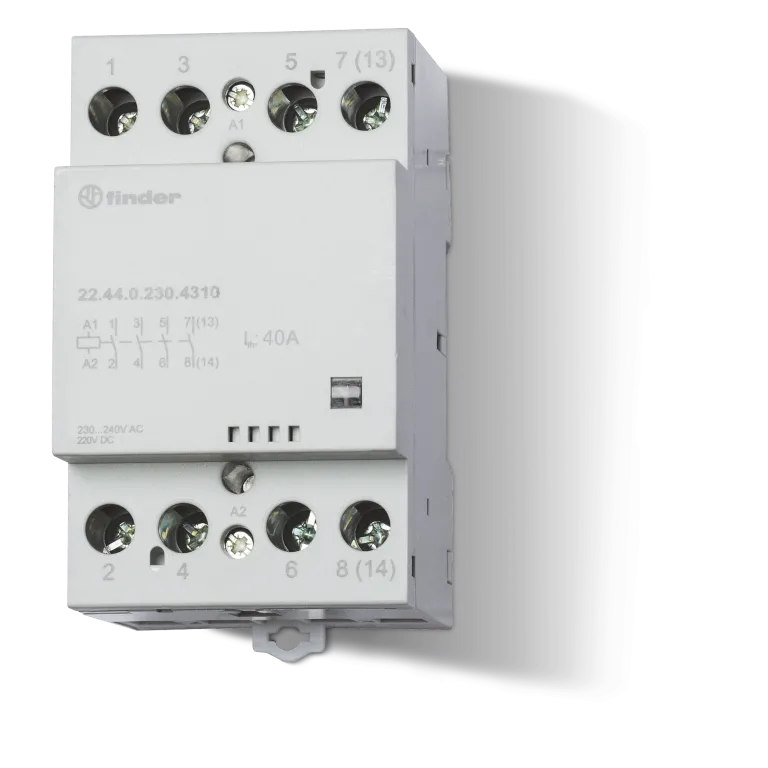 Contactorul modular Finder 22.44.0.230.4310 este un dispozitiv de comutare electromecanic destinat instalațiilor electrice, având următoarele caracteristici: