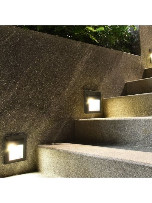 Corp de iluminat LED de 2W pentru scări, 4000K, alb/negru, rezistent la condiții meteorologice severe, potrivit pentru interior și exterior.