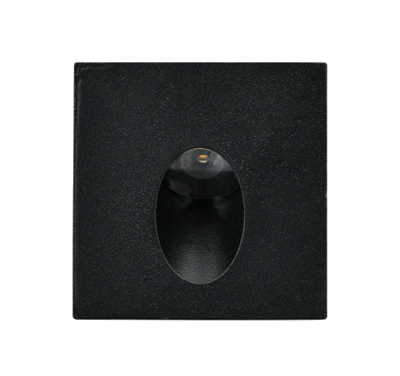 Corp de iluminat LED încastrat, pătrat, negru, 2W, 3000K, IP65, ideal pentru iluminatul treptelor și pereților.