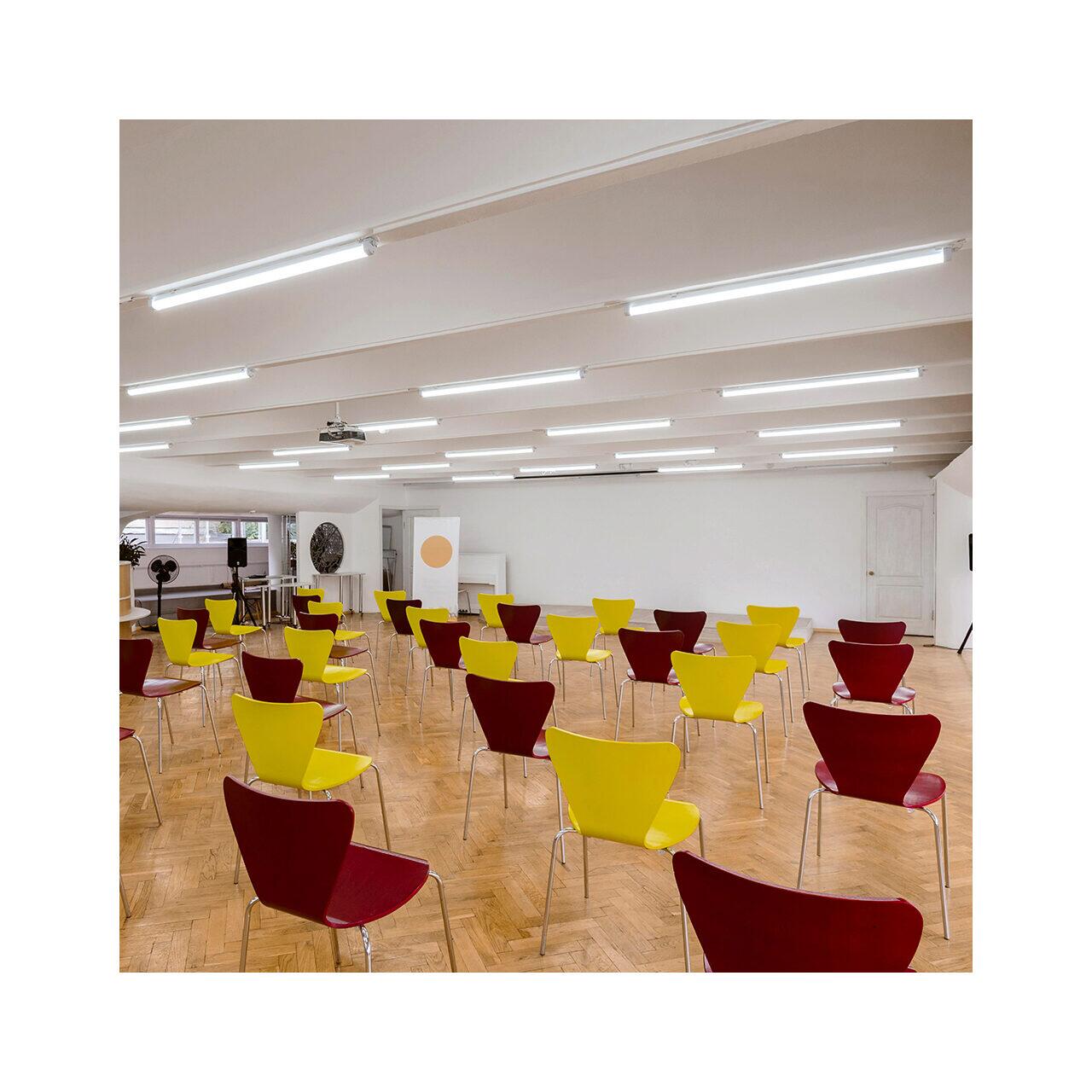Corp de iluminat liniar PROLINE-IPG-M 40W 3-in-1, IP65 – soluție LED profesională, cu putere de 40W și funcție „3-in-1” ce permite selectarea temperaturii de culoare (3000K / 4000K / 6500K). Oferă iluminare puternică și uniformă, consum redus de energie și protecție IP65 împotriva prafului și umezelii, fiind ideal pentru spații industriale, comerciale sau zone tehnice.