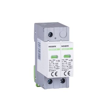 Descărcător supratensiune Noark Ex9UEP Clasa 2, 750V DC, 2P, pentru sisteme fotovoltaice cu împământare.