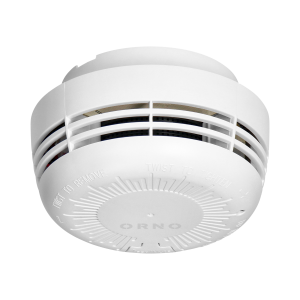 Detector de fum ORNO OR-DC-609 cu senzor fotoelectric, alimentat de baterie 9V, alarmă optică și sonoră de 85 dB, conform standardului EN14604:2005.