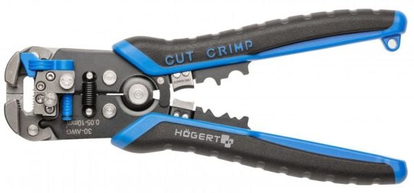 Cleste dezizolator automat de 210 mm, ideal pentru îndepărtarea izolației și sertizarea conectorilor, fabricat din oțel SK5 de înaltă calitate.