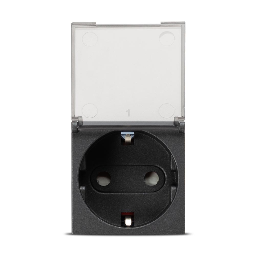 Priza Schuko cu capac și protecție copii, 2M, antracit mat, Elbi.