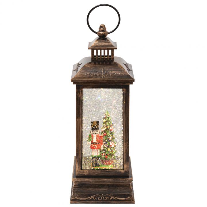 Felinar cu lichid și sclipici, model ostaș, ideal pentru decorarea interioară în perioada sărbătorilor de iarnă. Dispune de iluminare LED cu lumină alb cald și funcție de temporizare (6 ore ON / 18 ore OFF). Alimentare cu 3 baterii de 1,5 V (AA) sau adaptor de 4,5 V DC (neincluse). Dimensiuni: 10,4 x 27 x 10,4 cm.