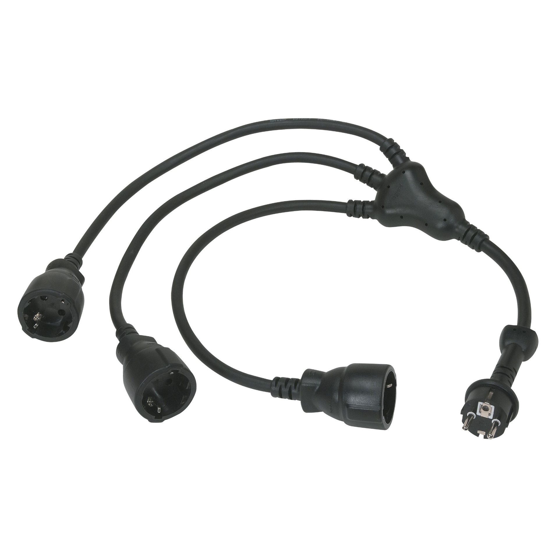 Fisa multipriza cauciuc tip caracatiță Legrand 050377, 3 prize, 3500 W, cablu 0,8 m, negru, IK10.