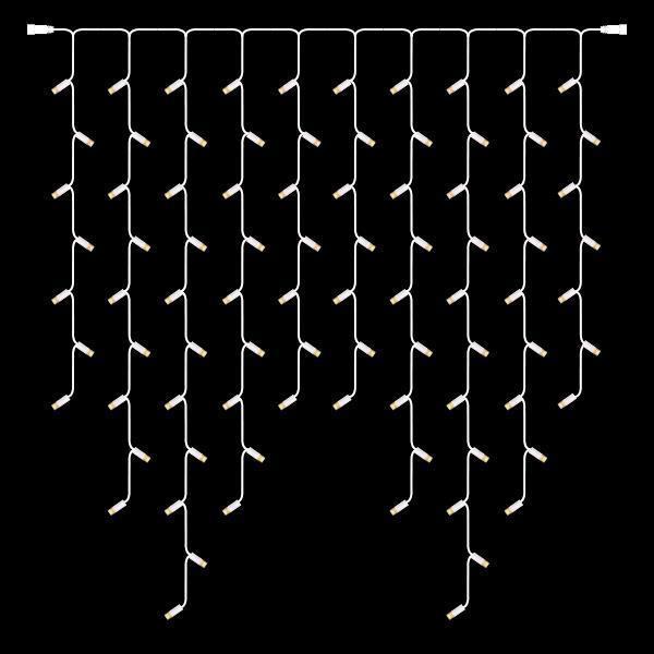 Ghirlandă tip “icicle” cu 86 LED-uri alb cald, pe cablu din cauciuc alb cu prelungitor, dimensiuni H110 × L100 cm, grad de protecție IP65 (fără ștecher).