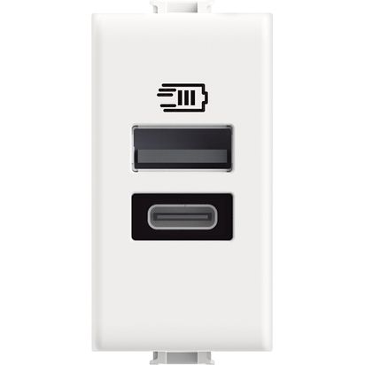 Încărcător USB dublu Bticino Matix cu porturi de tip A și C, 15W, alb.