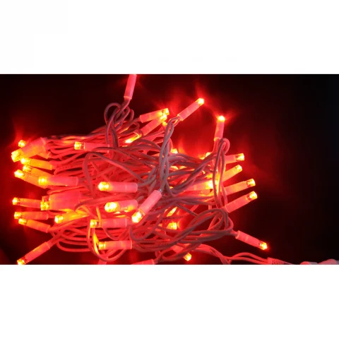 Ghirlandă luminoasă decorativă echipată cu 30 de LED-uri de culoare roșie, dispuse pe un cablu alb cu lungimea de 3 metri. Ideală pentru decorarea interioară și exterioară în diverse ocazii festive.