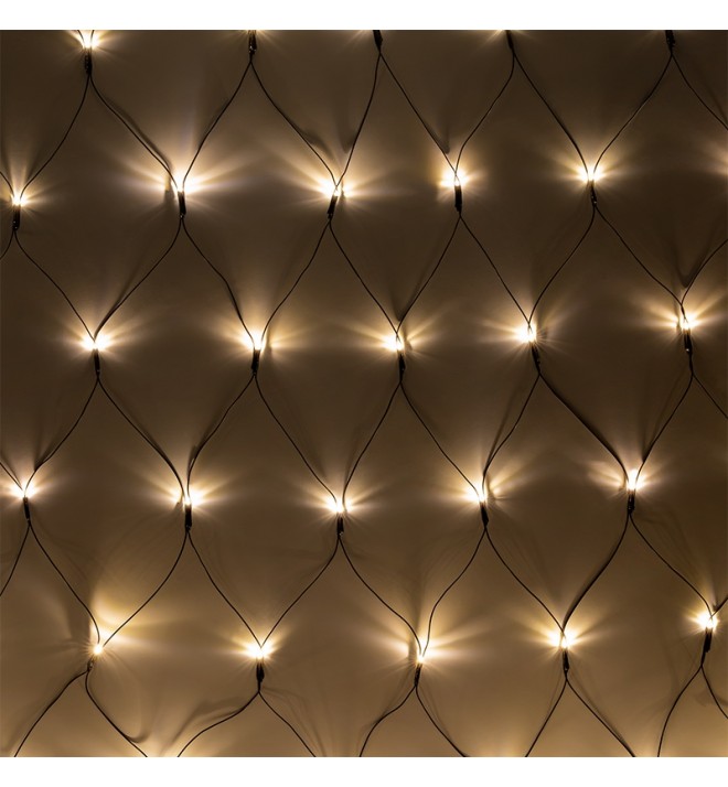 Instalație festivă LED tip plasă pentru exterior, 160 LED-uri alb cald, dimensiuni 2x1.5m, IP44, consum 6W – ideală pentru decorarea fațadelor, balcoanelor și grădinilor.