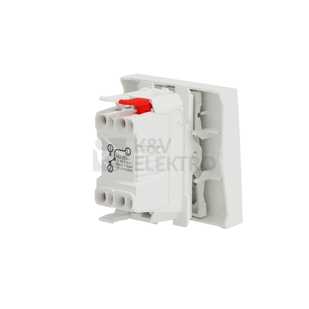 Intrerupator cap scara 10A 2M alb Unica Studio cu indicator LED, montaj încastrat, fixare cu gheare, design modern și durabil.