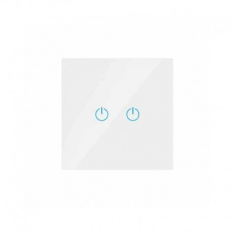 Întrerupător dublu cu touch alb, din sticlă securizată, cu design modern și funcționalitate avansată.
