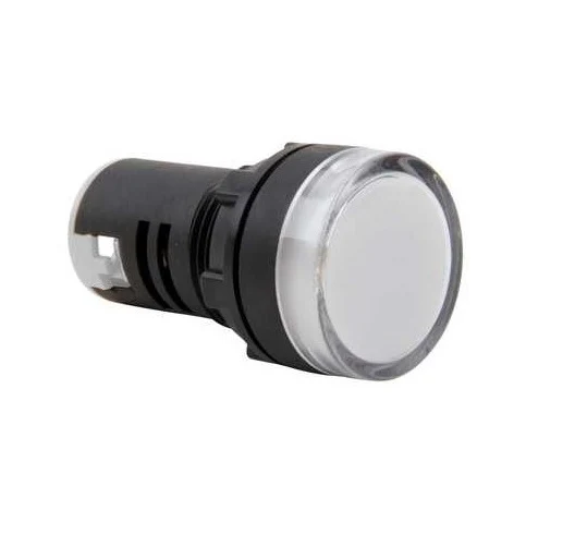 Lampă de semnalizare LED albă, 22 mm, 230V AC, pentru aplicații industriale.