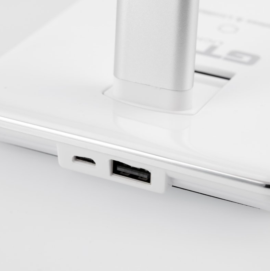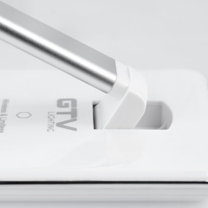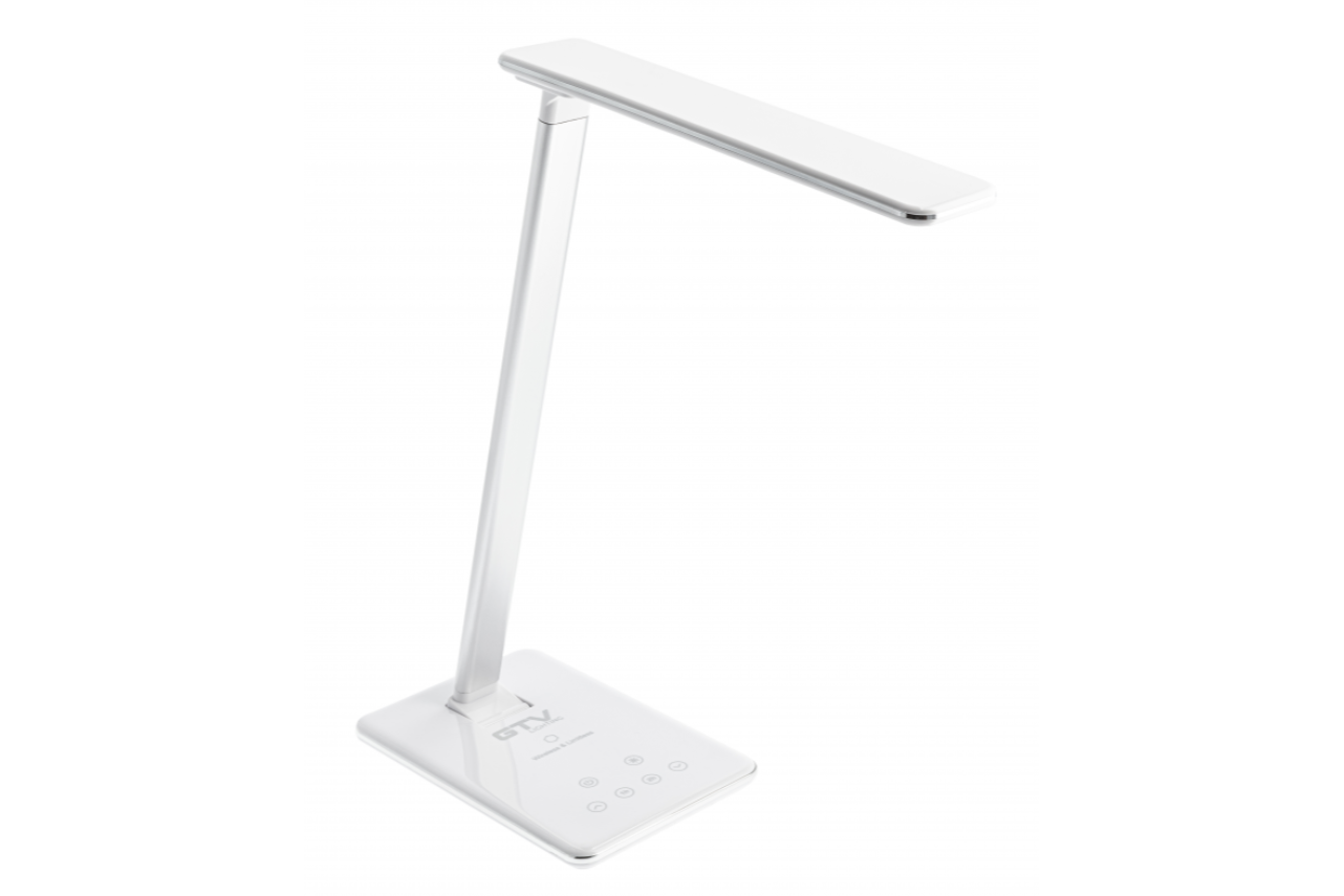 Lampă LED de birou GTV Tritton 6W cu panou tactil, încărcare wireless și port USB, reglabilă în trei planuri, ideală pentru muncă, studiu și relaxare.