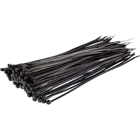 Legături de cablu negre 3,6 x 250 mm pentru organizarea și fixarea cablurilor.