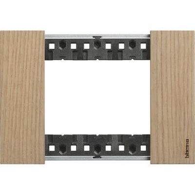 Ramă ornament cu 3 module din lemn de stejar, parte a gamei Living Now de la Bticino. Design elegant și natural, ideal pentru interioare moderne.