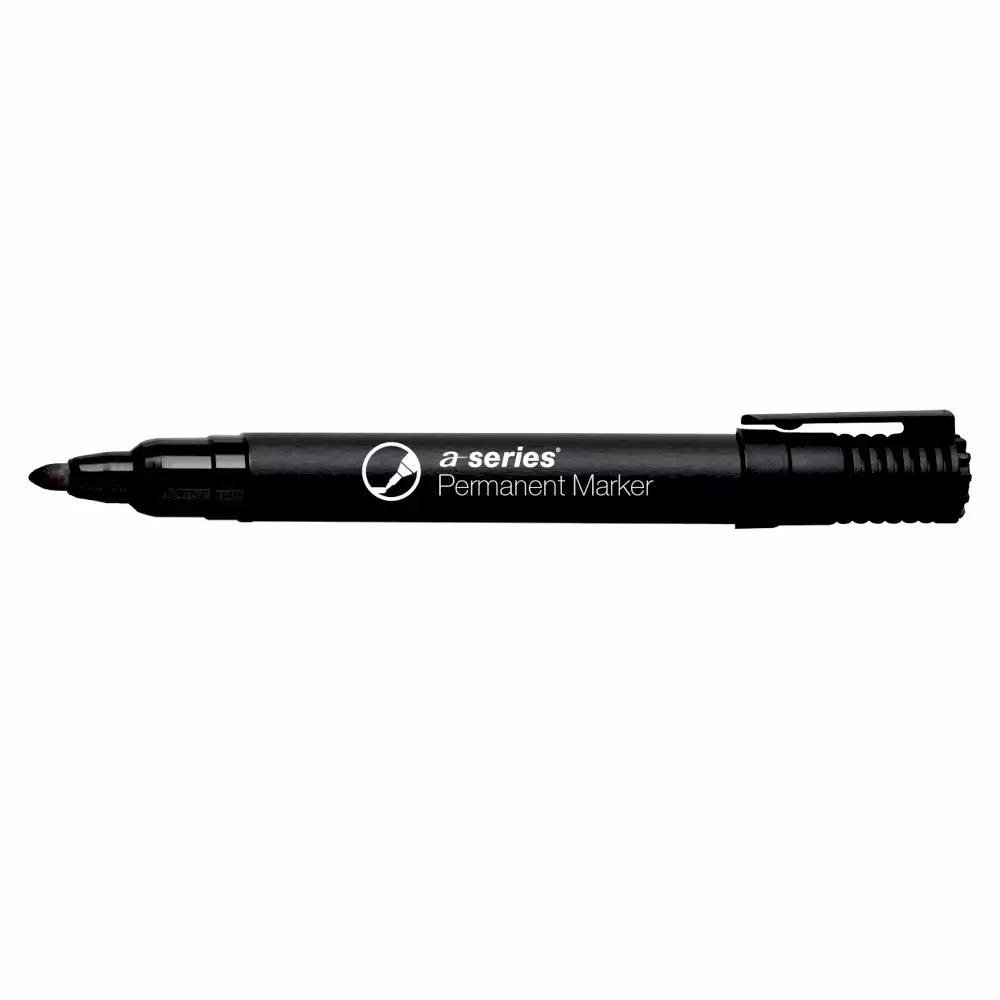 Marker permanent negru A-Series, vârf rotund 2 mm, rezistent la apă și uscare rapidă.