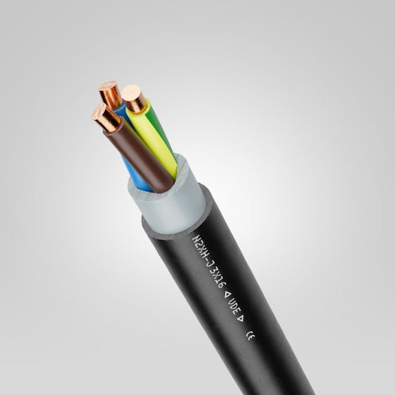 Cablu de energie N2XH 5x4 mm², fără halogeni, cu întârziere mărită la propagarea flăcării, destinat instalațiilor electrice fixe în clădiri publice și industriale. Conductorii sunt din cupru rigid, izolați cu polietilenă reticulată (XLPE), iar mantaua exterioară este din poliolefina fără halogeni, de culoare neagră. Acest cablu asigură o protecție sporită în caz de incendiu, datorită emisiilor reduse de fum și absenței gazelor corozive.