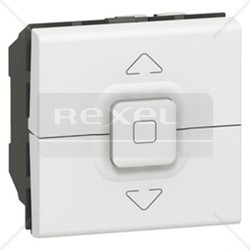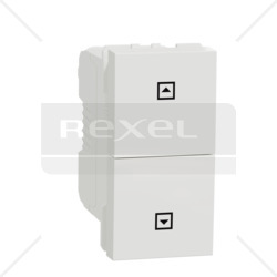 Întrerupător modular pentru jaluzele, 1 modul, 10A, alb, cu simboluri SUS-JOS-STOP pentru control intuitiv.