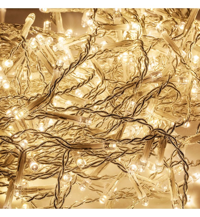 Perdea luminoasă REBEL cu 330 LED-uri alb cald, lungime 5m, IP44, ideală pentru decorarea interioară și exterioară în perioada sărbătorilor.
