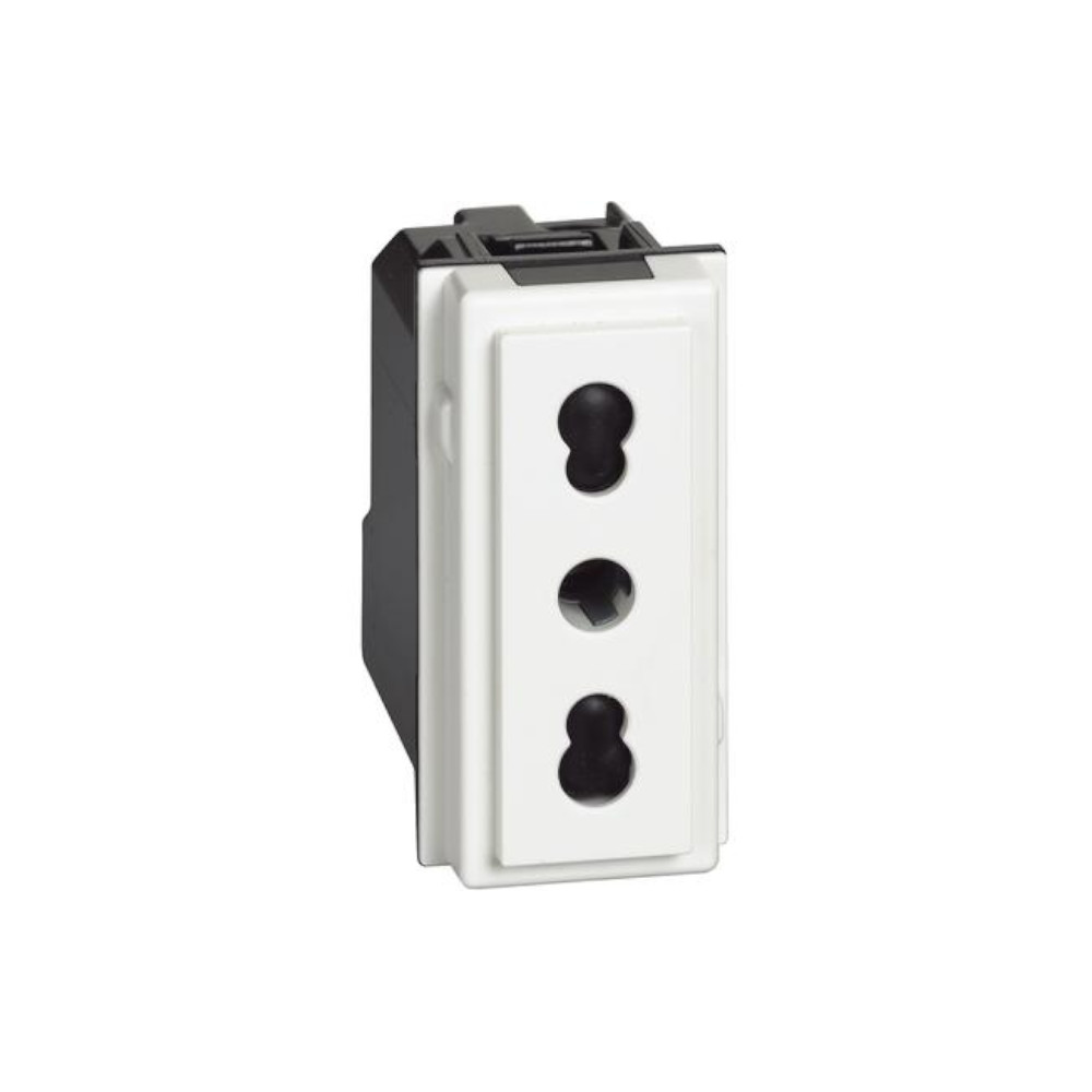 Priză standard italiană 2P+T 10/16A 250V albă, design modern și funcționalitate superioară, ideală pentru diverse aplicații electrice.