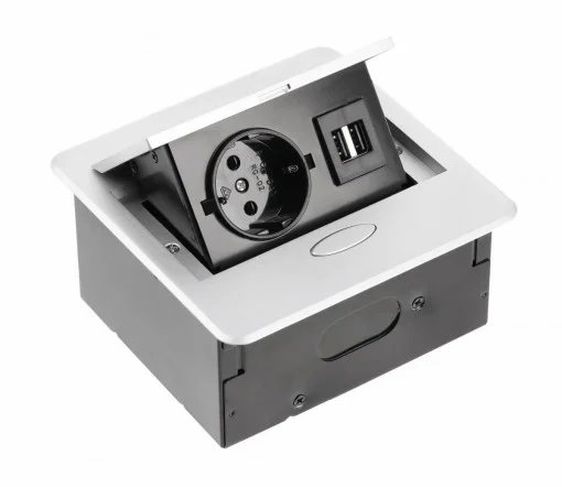 Priza încorporabilă Avaro este o soluție compactă și elegantă pentru organizarea spațiului în locuința sau biroul dumneavoastră. Echipată cu o priză Schuko și două porturi USB tip A, permite alimentarea simultană a mai multor dispozitive. Designul său versatil permite montarea inversată pentru dulapurile superioare și montarea laterală pentru laturile dulapurilor sau insulele de bucătărie.