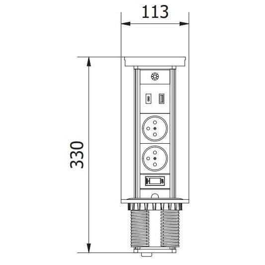 Priza încorporabilă Camino este un exemplu de ergonomie și minimalism. Nu ocupă mult spațiu, fiind perfectă pentru mese mici sau birouri de studenți. Funcția de lumină de veghe este ideală pentru cei care lucrează noaptea. De asemenea, este utilă în bucătărie în timpul preparării mâncării. Priza Camino este ușor de utilizat – trebuie doar să o trageți în sus până când partea inferioară se blochează în poziție. Încărcătoarele inductive devin standard și sunt disponibile în acest dispozitiv.