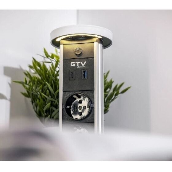 Priză încorporabilă în mobilier Camino 2x Schuko, USB-A, USB-C, Inducție, cablu 1.5 m, negru, GTV