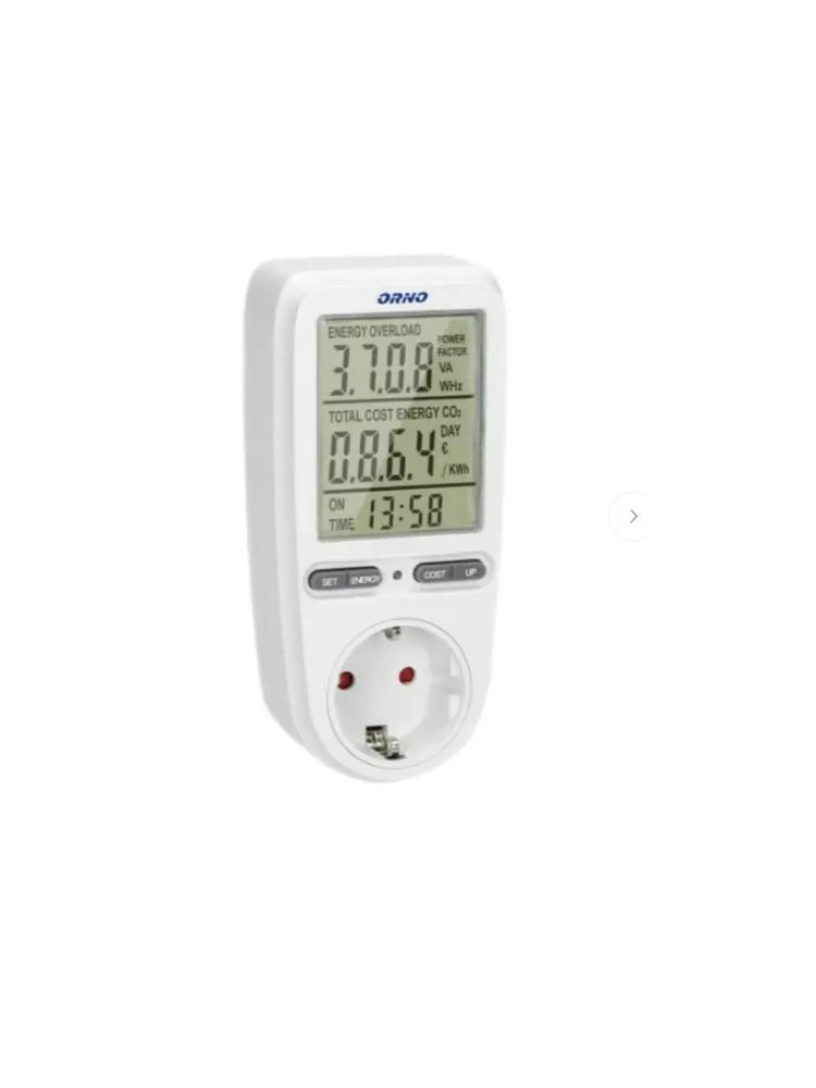Priza cu contor ORNO OR-WAT-435(GS) vă permite să monitorizați consumul de energie electrică și să calculați costurile energiei pentru dispozitivele conectate. Ecranul LCD mare afișează informații precum tensiunea principală, curentul în circuit, frecvența curentă, factorul de putere, puterea sarcinii conectate, consumul total de energie (kWh), costul energiei consumate, prețul programabil per kWh, timpul total de măsurare a consumului de energie (de la 0 la 9999 zile) și cantitatea medie a emisiilor de CO₂ generate de energia consumată. Bateria internă menține setările dispozitivului în cazul unei căderi de tensiune.