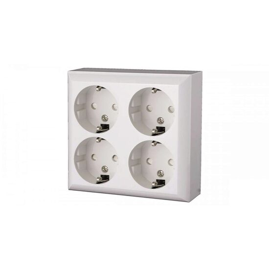 Priză de interior cu 4 locuri, montaj pe perete, design clasic, ideală pentru diverse spații interioare.