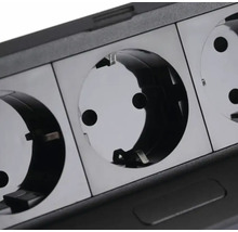 Priza încastrabilă dreptunghiulară SOFT cu 3 prize Schuko este soluția ideală pentru birouri, bucătării sau ateliere, oferind un design compact și elegant. Fabricată din oțel și plastic, cu un finisaj negru mat, această priză se integrează perfect în orice decor modern. Capacul se deschide ușor prin apăsarea unui buton, asigurând acces rapid la cele 3 prize Schuko de 220V. Instalarea este simplă, iar cablul de alimentare de 1,5 metri inclus permite o flexibilitate sporită în utilizare.