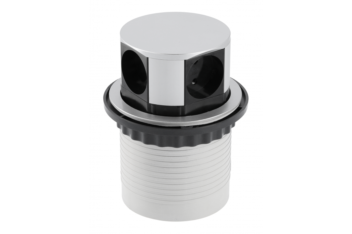 Priza încastrabilă în blat COMFORT Ø100mm de la GTV este soluția ideală pentru organizarea eficientă a spațiului de lucru, fie că este vorba de birou sau de acasă. Cu un design modern și funcțional, această priză oferă acces facil la patru prize Schuko, fiind perfectă pentru alimentarea simultană a mai multor dispozitive.