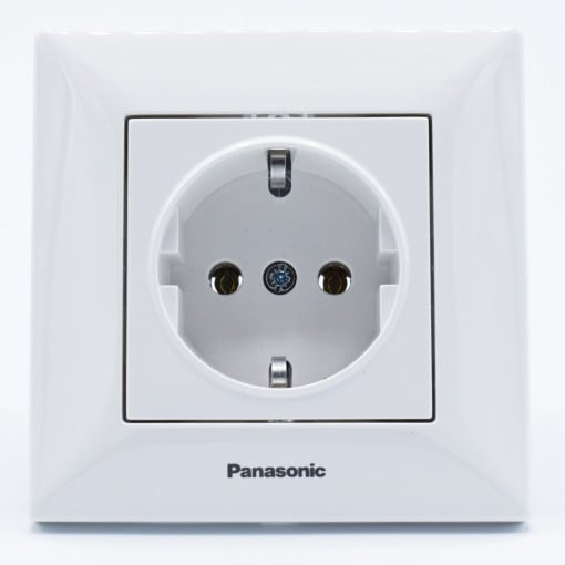 Priză simplă cu împământare 16A, IP20, Alb, Panasonic Arkedia Slim - design modern și siguranță sporită pentru locuința sau biroul tău.