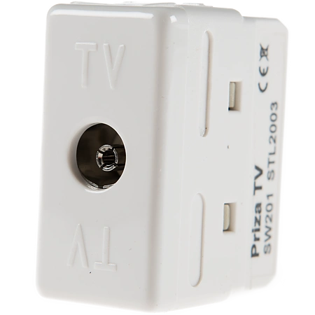 Priză TV modulară albă Stil Comtec 20228, ideală pentru conectarea televizoarelor în spații rezidențiale și comerciale.