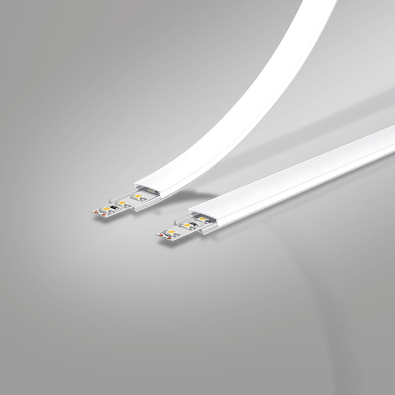 Profilul flexibil din aluminiu EUROLAMP este conceput pentru montaj aplicat al benzilor LED, oferind o soluție eficientă și estetică pentru iluminat decorativ sau funcțional. Datorită construcției flexibile, acesta permite instalarea pe suprafețe curbate sau în zone unde profilele rigide nu pot fi utilizate.