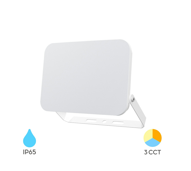 Acest proiector este potrivit pentru utilizare în diverse condiții meteorologice, datorită gradului de protecție IP65, care asigură rezistență la praf și apă. Designul său slim și culoarea albă îl fac ușor de integrat în orice mediu exterior.