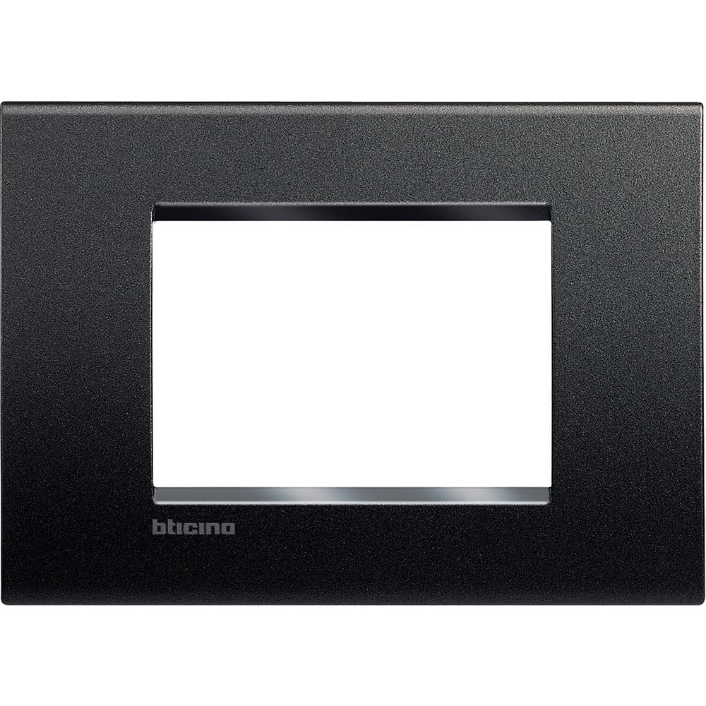 Ramă decorativă pentru 3 module din gama Living Light de la Bticino, ideală pentru montarea prizelor și întrerupătoarelor. Fabricată din plastic de înaltă calitate, de culoare antracit, oferă un aspect modern și elegant instalațiilor electrice.